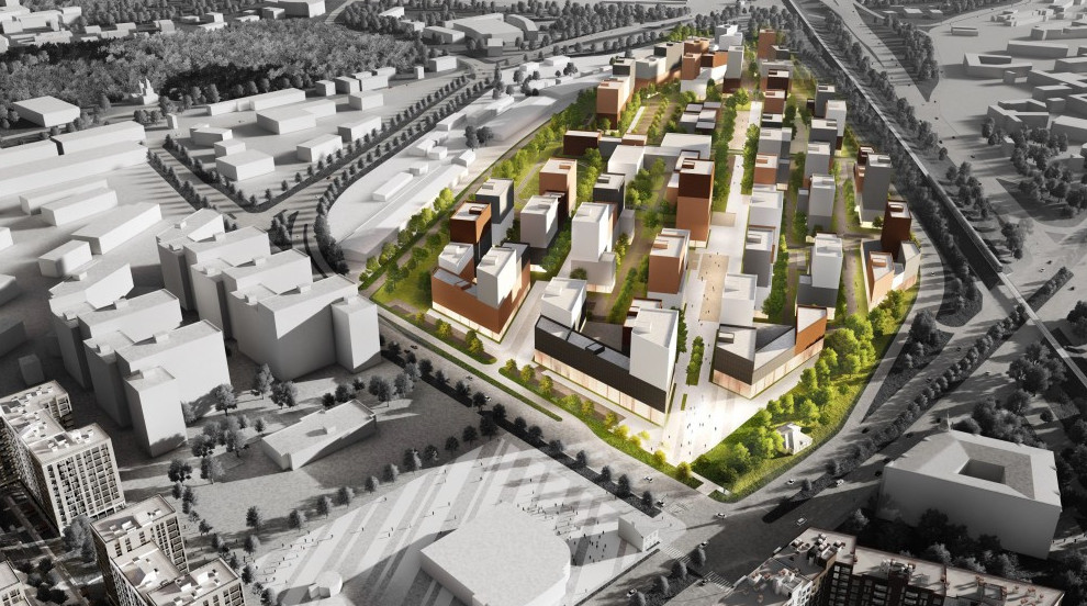 Представлены картинки жилого квартала, который собираются построить на месте товарной станции Витебского вокзала на Лиговском проспекте, 240. Проектом предполагается удлинить Камчатскую улицу.