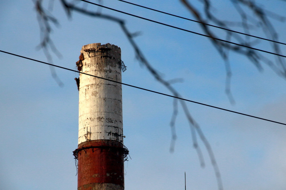 В минувшем январе началась разборка железобетонной дымовой трубы, являющейся частью здания. Работы проводятся вручную.