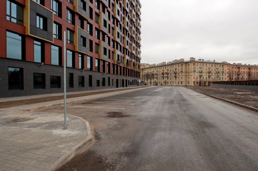 В Перевозном переулке завершилось строительство жилого дома — последней очереди комплекса, выросшего на месте Малоохтинского кладбища. Вместе с вводом открыли новый участок самого переулка.