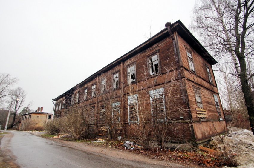 По факту старинный дом отстроили из бетона и покрыли вагонкой. Визуально новодел со всех сторон окружен пространствами.