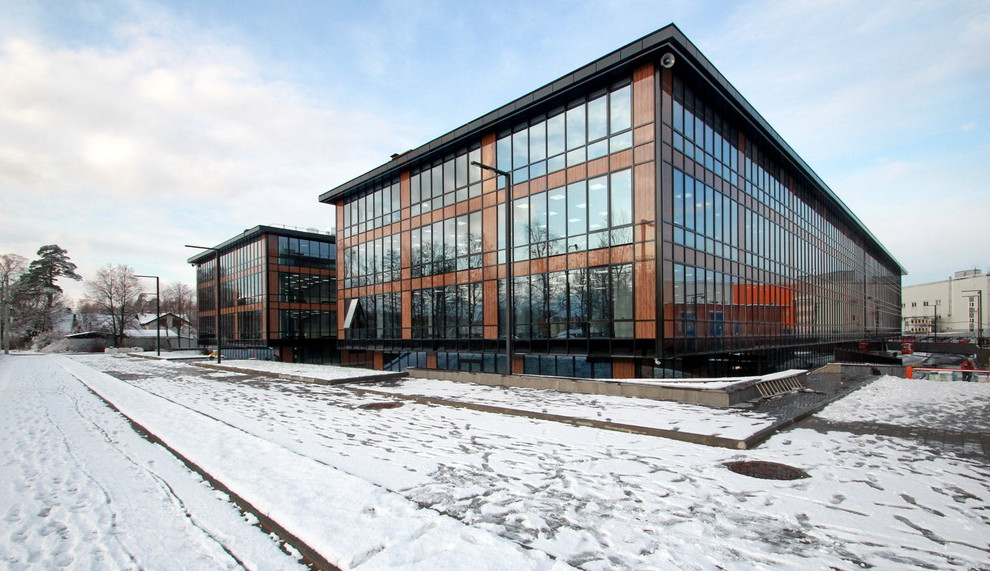 В Лахте на Лахтинском проспекте завершилось строительство стеклянного бизнес-центра. В рамках проекта был воссоздан объем дореволюционного здания — из бетона, покрытого вагонкой.