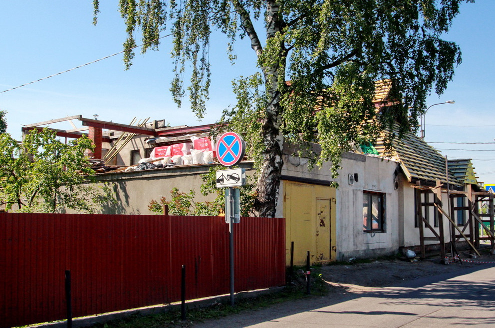 В Парголове сносят самовольную пристройку к зданию на Выборгском шоссе, 435, выходящую на улицу Шишкина. Добиться этого собственнику соседнего участка удалось через суд.