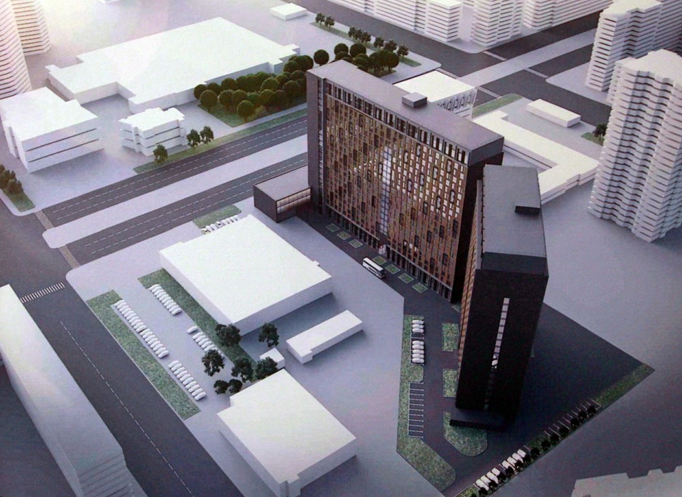 Сегодня был представлен проект здания, разработанный ООО «Простиль» Вячеслава Ерошина. Оно, по данным «Канонера», будет состоять из двух 23-этажных объемов, соединенных галереей на уровне второго этажа: ближний к проспекту объем рассчитан на краткосрочное проживание (до пяти дней), дальний — на долгосрочное (до месяца). К проспекту здание выйдет стеклянным торцом.