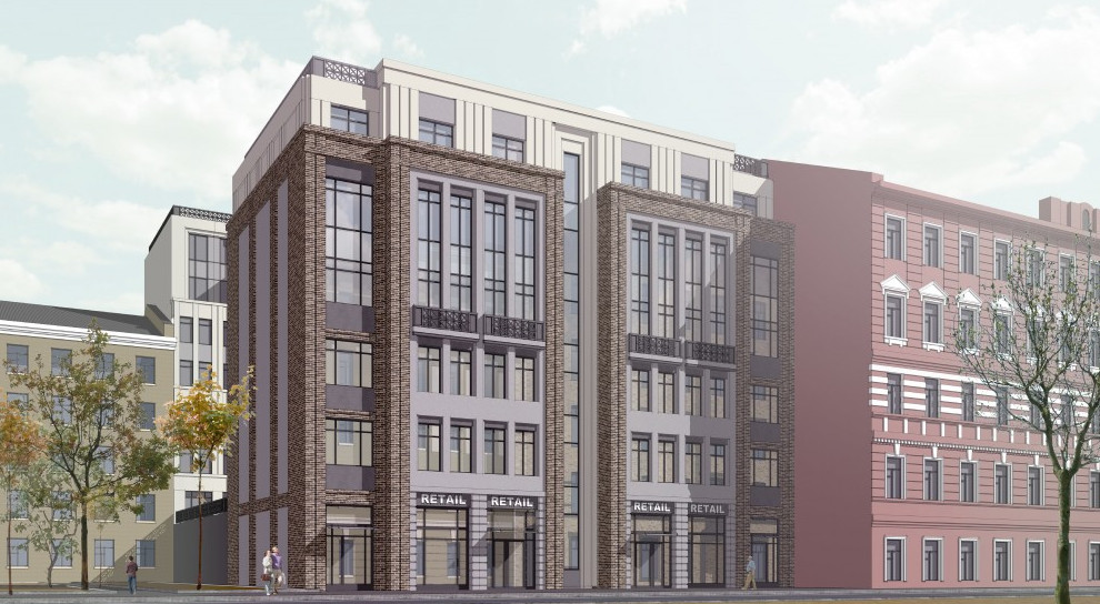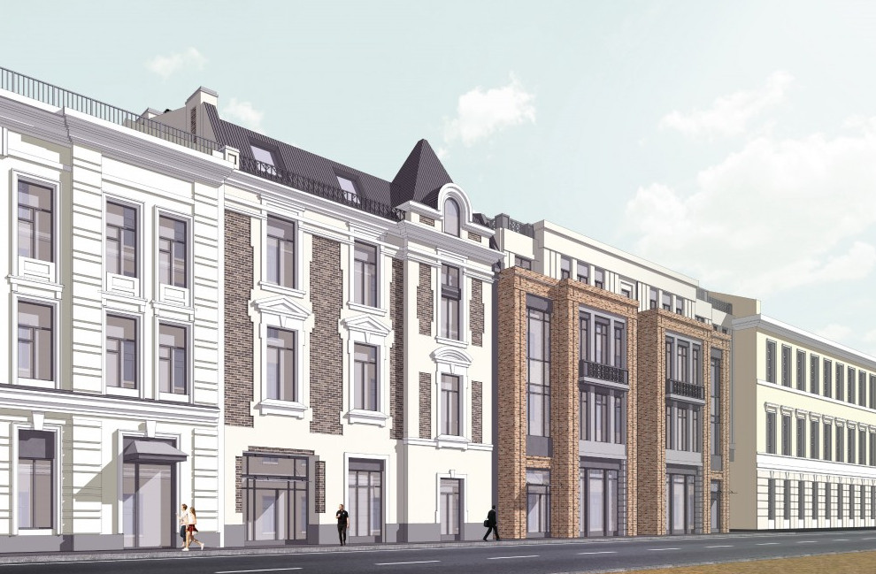 Представлены фасады жилого дома, который группа RBI намеревается построить на 12-й Красноармейской улице, 26. Проектом предусмотрено воссоздание утраченных дореволюционных зданий.