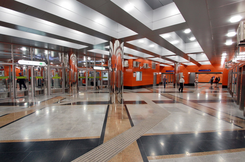 Еще впервые здесь была использована новая разновидность типа «горизонтальный лифт»: выход из поездов осуществляется через стеклянные двери, правда, тонированные. Так сделано якобы для безопасности — чтобы люди не падали на рельсы. Однако из-за этого визуально пространство оказалось очень сжатым.