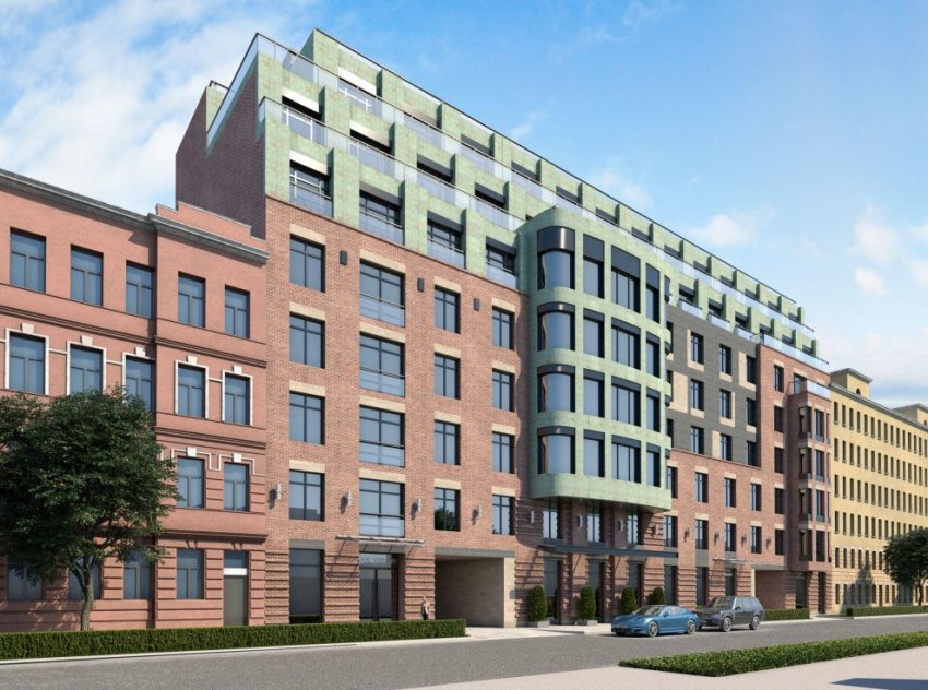 Пустырь на Большой Разночинной улице, 19а, застроят восьмиэтажным жилым домом. Его фасады облицуют разноцветным кирпичом и выделят большим зеленым эркером со сглаженными углами.