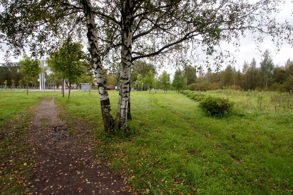 Под спортивный объект отвели 2,2 гектара на юго-восточном углу Санкт-Петербургского шоссе и Заводской дороги. Там вдоль шоссе имелся благоустроенный сквер, а дальше — невысокий лес.
