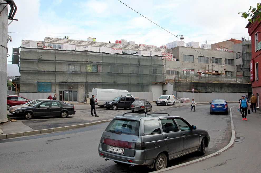В рамках реконструкции был надстроен третий этаж из пенобетона со стороны Промышленной улицы. В документации отмечалось, что «надстройка осуществляется в габаритах повышенного объема (для организации второго света), зафиксированного в проектных и фиксационных материалах 1930-х годов, но к настоящему времени разобранного». Впрочем, ни на одной старой фотографии, сделанной с площади Стачек от Перекопской улицы, этого этажа не было зафиксировано.