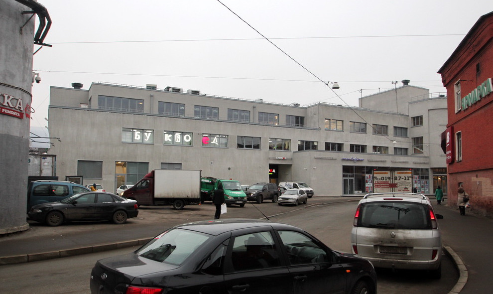 Надстроенный новым этажом Кировский универмаг на площади Стачек, 9, открылся для покупателей. Новый этаж появился вдоль Промышленной улицы и стал виден со стороны Перекопской.