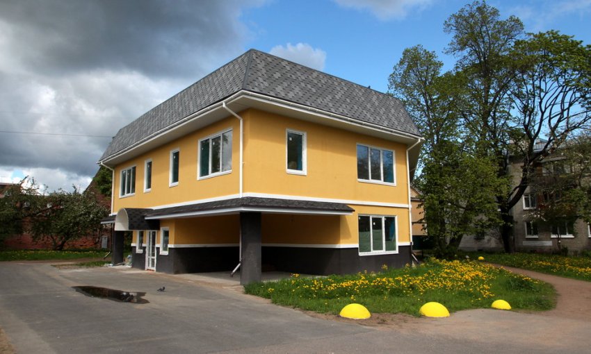 Двухэтажную гостиницу построили во дворах на Никольской улице в Петергофе. По обе стороны от главного входа сделаны глубокие ниши, которые будут использоваться, скорее всего, под летние кафе.