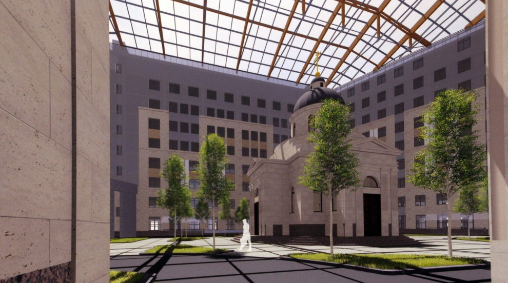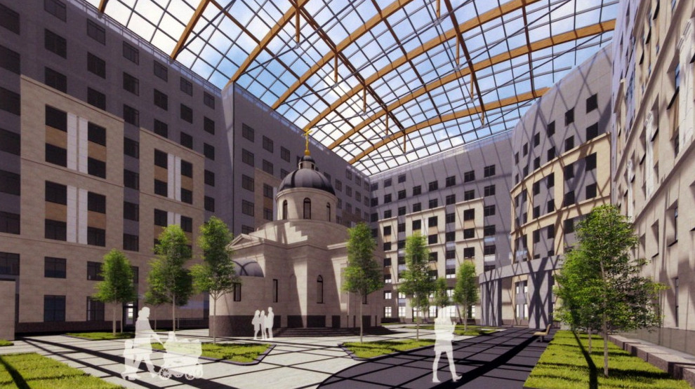 Здание должно разместиться в самом большом из дворов-колодцев, а именно в северном. Сам двор будет превращен в атриум. Попасть к храму получится через арку с улицы Доктора Короткова, если эта арка не будет закрыта.