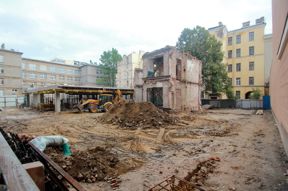 Во дворах на Невском проспекте, 102, завершилось «воссоздание» флигеля, который числится памятником истории как ленинский адрес. Несмотря на статус, его полностью снесли вместе с ценным помещением.