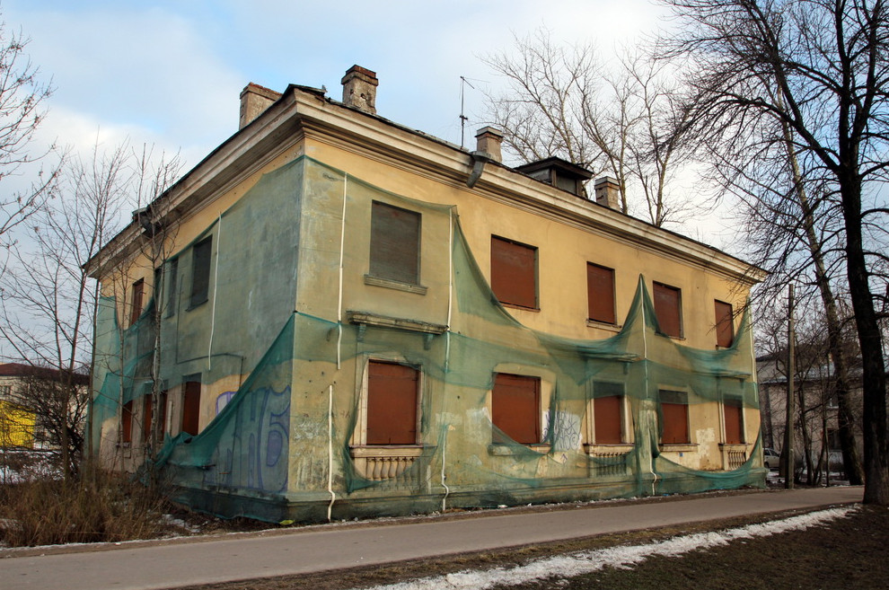 Двухэтажная жилая коробка была построена в 1951 году. Она расположилась на красной линии проспекта Ленина напротив Красносельского кладбища. В последнее время дом стоял заброшенным.