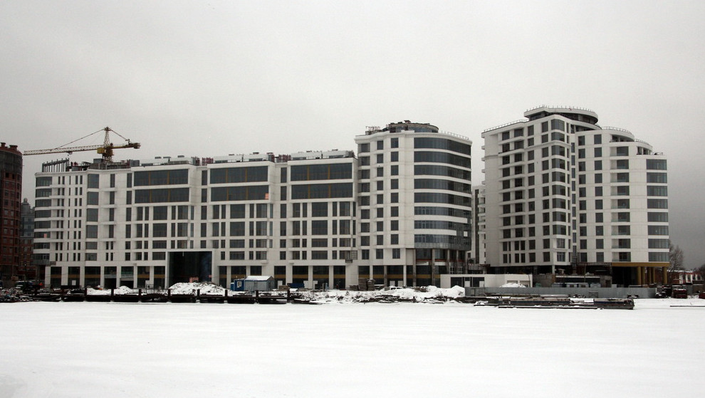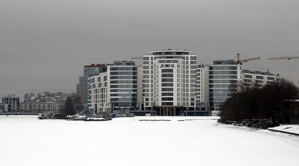 На Леонтьевском мысу в конце Ждановской улицы завершилось строительство жилого дома с белыми фасадами. Это один из редких примеров элитарных долгостроев в Петербурге.