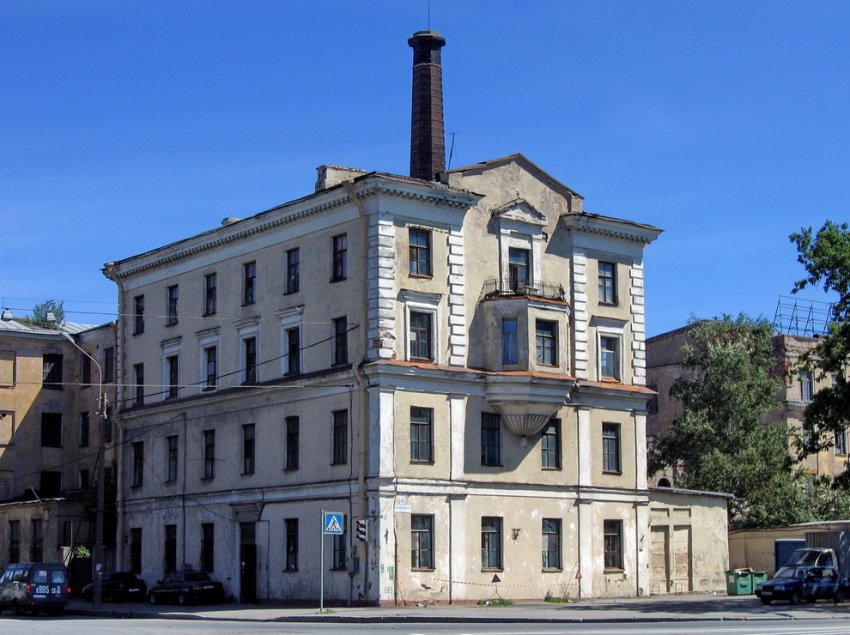 Охтинская мануфактура была возведена в 1844–1854 годах архитектором Романом фон Генрихсеном. В начале XX века ее перестроил Василий Шауб. На набережную выходила четырехэтажная казарма. Она, как и остальные корпуса, была под охраной, но в рамках подготовки проекта освоения земли их вывели из списка памятников, за исключением краснокирпичной водонапорной башни во дворе.