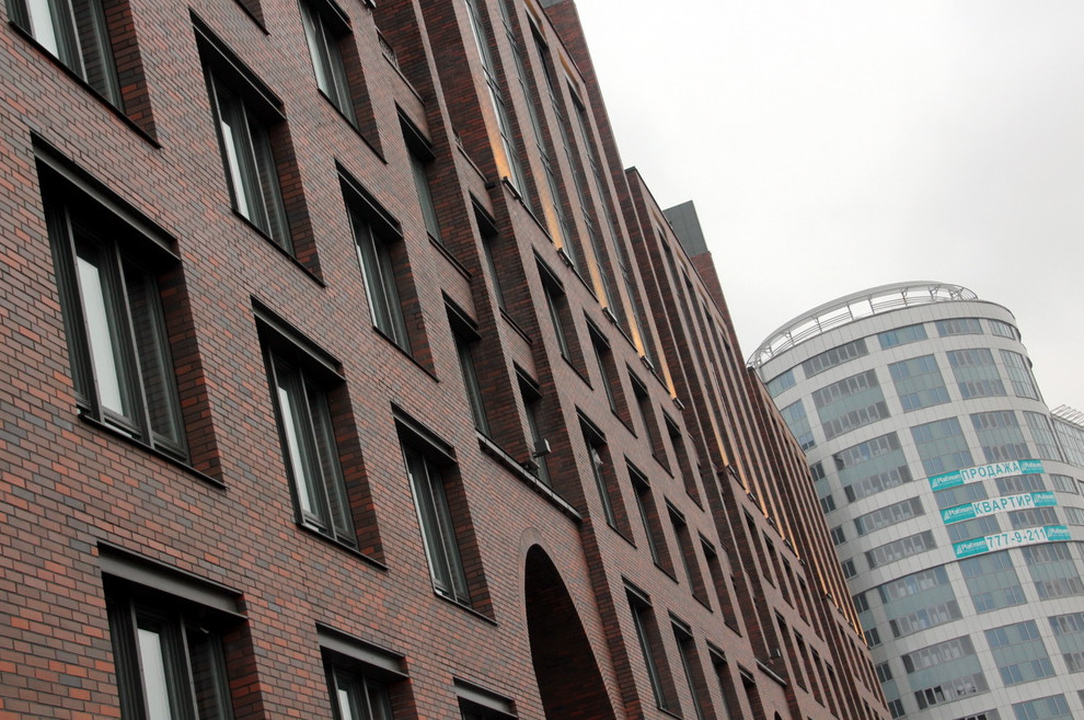 Девелопером участка стал холдинг RBI в лице ООО «Денген». Компания заказала проект жилого дома в ООО «Григорьев и партнеры», которое на тот момент принадлежало нынешнему главному архитектору города и председателю КГА Владимиру Григорьеву. Сам господин Григорьев пояснял «Канонеру», что фасады дома имеют «ярусное построение». «Материал отделки фасадов — лицевой темно-коричневый кирпич — созвучен колористическому строю фрагментов исторической застройки невских берегов Выборгской стороны и Охты», — отмечал проектировщик.
