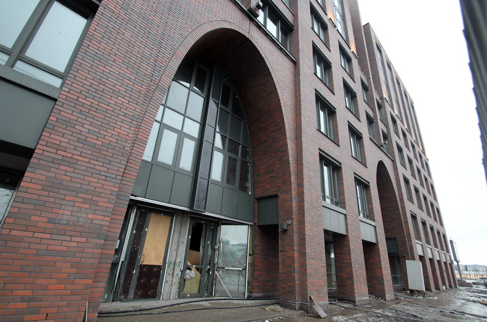 На углу Пискаревского проспекта и Свердловской набережной сдали жилой дом с арками-параболами. Ради него в свое время снесли Охтинскую бумагопрядильную мануфактуру середины XIX века.