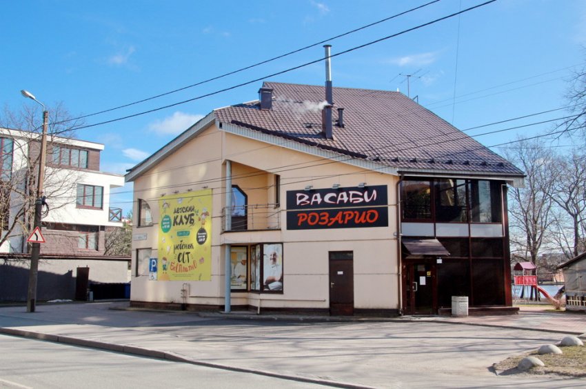 Двухэтажное здание ресторана сети «Васаби» было возведено не позднее 2011 года. Официально дома не существовало. Разрешение на «строительство» было выдано в ноябре 2019 года, а в январе 2020-го его де-юре ввели в эксплуатацию. Застройщиком было ООО «Ирида-ВС», проектную документацию готовило ООО «Департамент инноваций Северо-Запада».