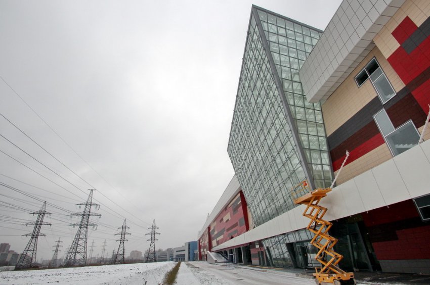 На улице Передовиков завершилось строительство крупного торгового комплекса, «якорем» которого, как ожидается, будет «Максидом». Задним фасадом он вышел к реке Охте, вдоль которой хотели проложить набережную.