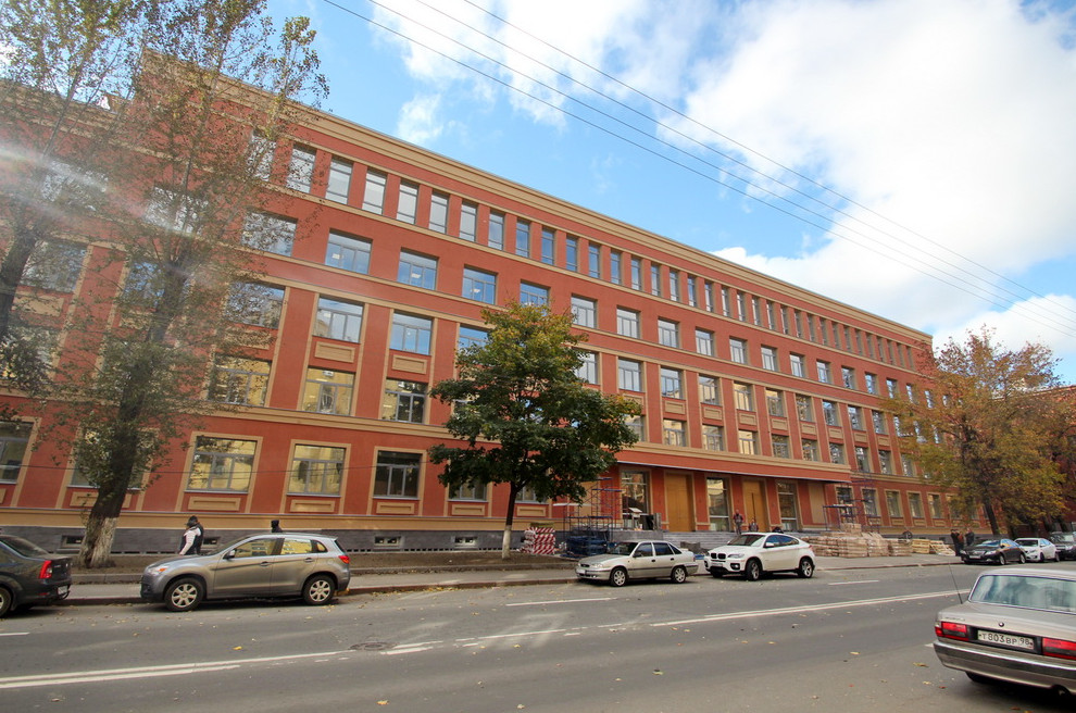 Позднесоветскому корпусу Военно-космической академии имени Можайского на Пионерской улице, 28, изменили фасад: если ранее он был серый и из плитки, то теперь красно-желтый и оштукатуренный.