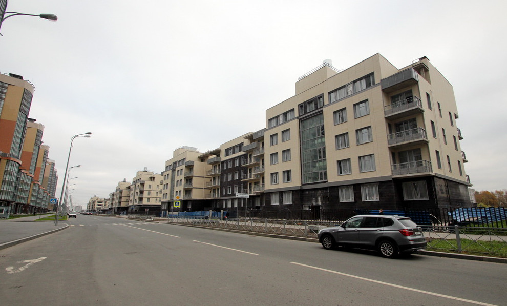 Достроена лицевая часть жилого комплекса между улицей Катерников и Дудергофским каналом. Корпуса объединены двумя аркадами, идущими сквозь весь квартал с юга на север.