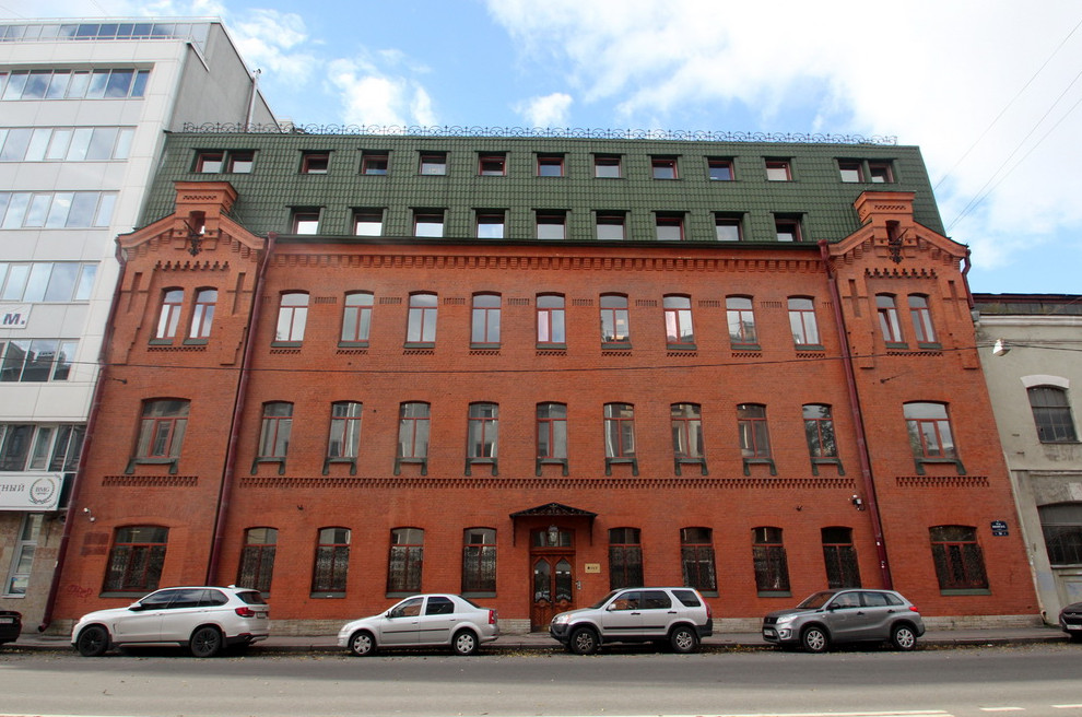 Трехэтажное здание в «кирпичном» стиле возвели в самом конце XIX века. Фасад оформлен двумя ризалитами с завершениями в виде щипцов с башенками. Через южный ризалит существовала арка для проезда во двор (ныне заложена).