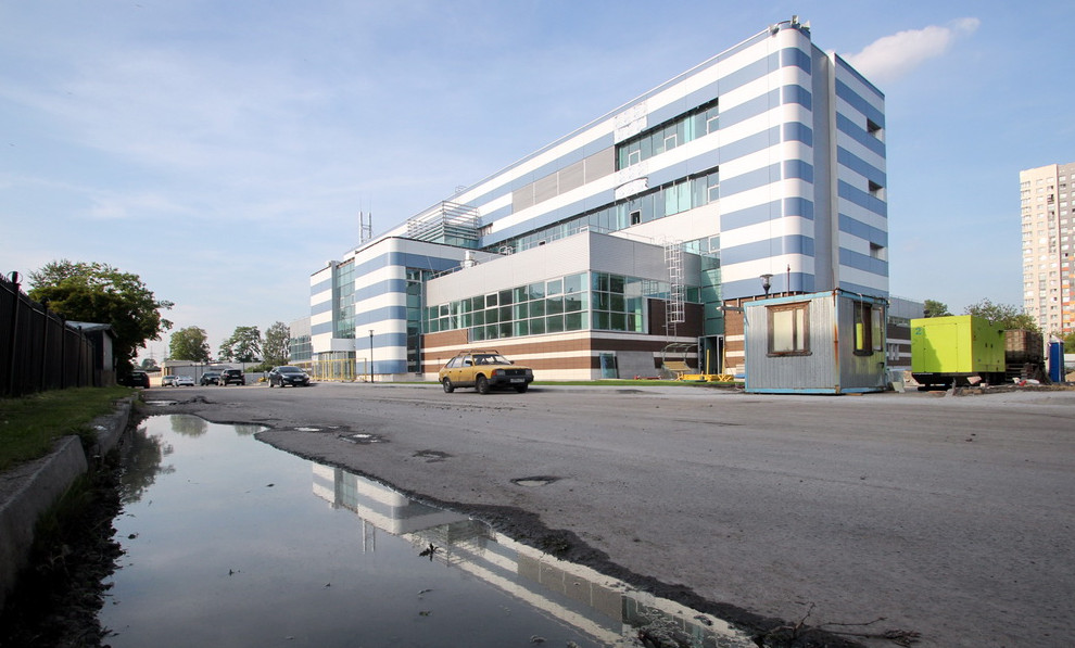 Типовое трехэтажное здание бассейна, проект которого создало ООО «Техглавстрой», возвело ООО «Бассейны». Аналогичные объекты эта же фирма при содействии Смольного разбросала по разным концам Петербурга. Объект на Турухтанке должны были закончить в 2014 году, но тогда только приступили к работам.