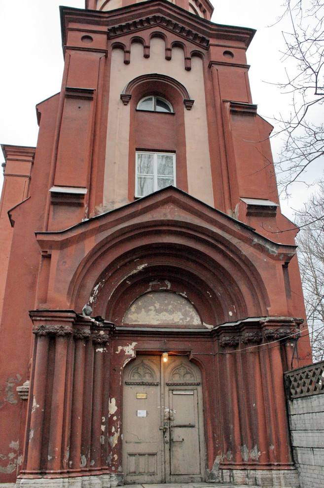 Кладбищенская церковь Посещения Пресвятой Девы Марии на Куликовом поле Выборгской стороны была освящена в 1879 году. Ее построили по проекту архитектора Николая Бенуа. В советское время здание сперва передали под картофелехранилище, а после 1959 года реконструировали под отдел физических исследований Центральной научно-исследовательской лаборатории.