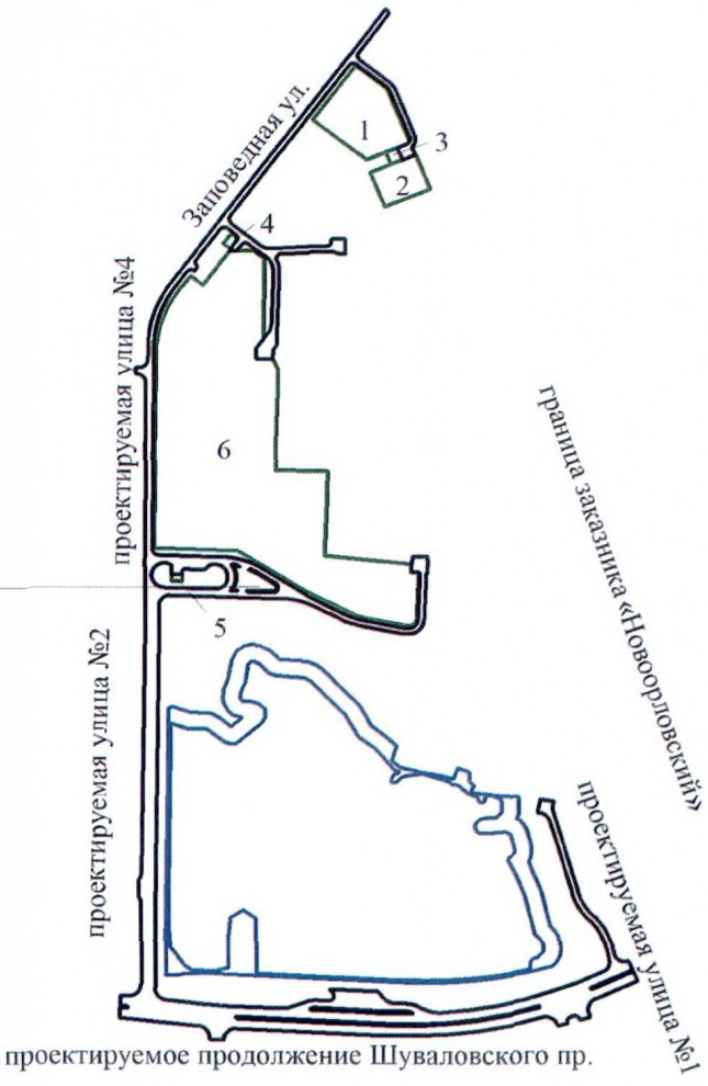 Территория ограничена Заповедной улицей, Новоорловским заказником, Шуваловским проспектом и перспективной дорогой почти в створе улицы Маршала Новикова (ее, скорее всего, включат в состав Заповедной). Проект планировки земель разрабатывался Научным центром генплана Санкт-Петербурга по заказу КГА.