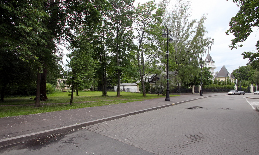 Но сейчас участок находится в собственности не государства, а ООО «Евроресурс». Этой же фирме в 2015 году КУГИ передал в аренду два надела, примыкающих с востока и тоже выходящих к реке Крестовке. На одном из них, западном, по заказу «Евроресурса» планируется построить новое здание — «временную одноэтажную хозяйственную пристройку» с эксплуатируемым чердаком. Объект разместится на том месте, где ранее стоял дом Ильиной; сейчас тут общедоступный парк с высокими деревьями.