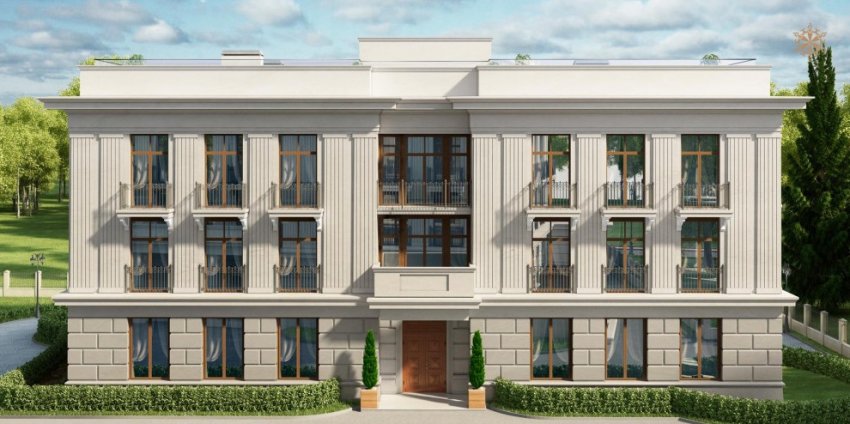 Обнародован проект апарт-отеля на 1-й Березовой аллее, 7, на Каменном острове. Жильем со сталинскими намеками на фасадах застраивают бывший санаторий.