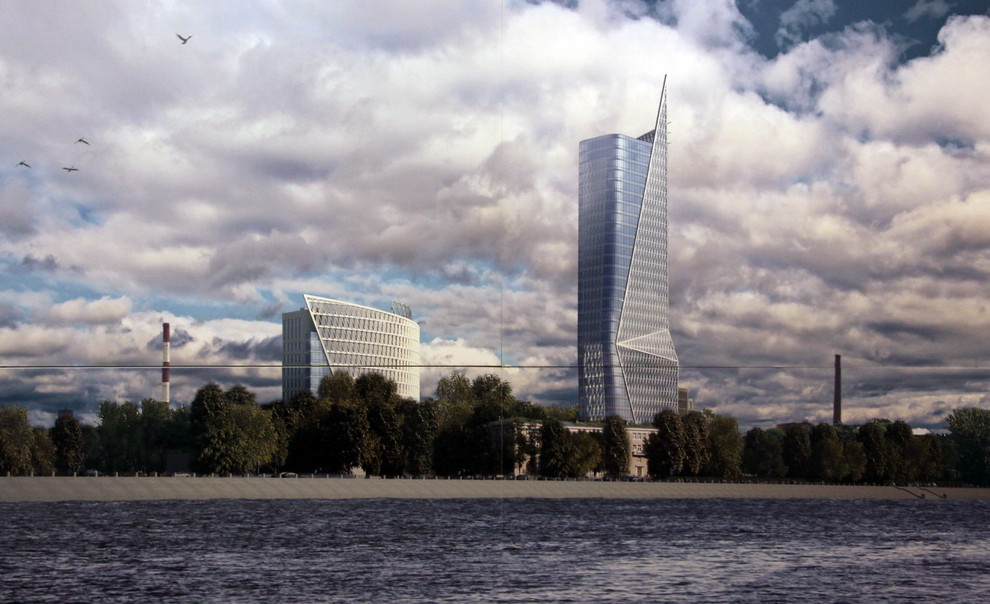 В конце 2013 года его работа была одобрена градсоветом. Тогда господин Буянов представил на суд экспертов проект 32-этажного 140-метрового офисного небоскреба. Это стеклянная точка, на которую со стороны Невы хотели «приклеить» стеклянный парус, заостряющийся кверху. Рядом отводилось место под паркинг и 24-этажный второй корпус.