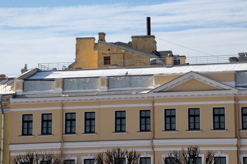 На Марсовом поле завершилась реконструкция дома Апраксина под гостиницу. В рамках работ вместо чердака построили мансарду, и на площадь, скорее всего, выйдет сплошное ее остекление.