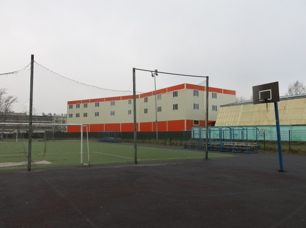 На улице Ткачей, 11, построили административное здание складского вида. Его расположили на участке, вытянутом вдоль подъездного железнодорожного пути. Участок расположен между подъездной железной дорогой и территорией школы № 327 (улица Ткачей, 9). Смольный, сдавая надел в аренду, выставил