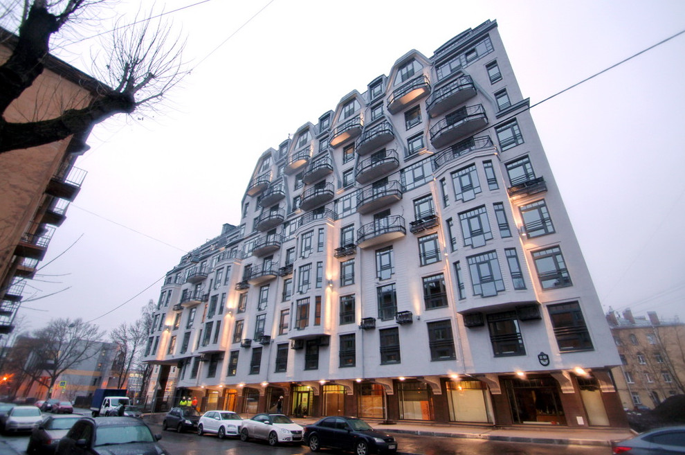 Для этого места был спроектирован десятиэтажный жилой дом. Он выглядит как многократно надстроенное здание. Проект создало ООО «Проектно-производственная фирма „А.Лен“» Сергея Орешкина. Сам руководитель мастерской относит свое произведение к «финской стилистике северного модерна».