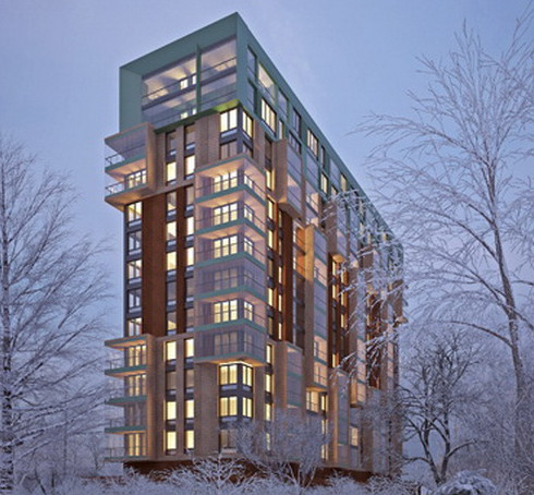 Дом будет 15-этажным, прямоугольным в плане. На фасадах вразнобой расположат лоджии и другие элементы декора, а окна верхних этажей сделают разного размера. Все это выполнено в модном «стиле» хаотизм. Проект выполнен ООО «Архитектурная мастерская „Б2“».