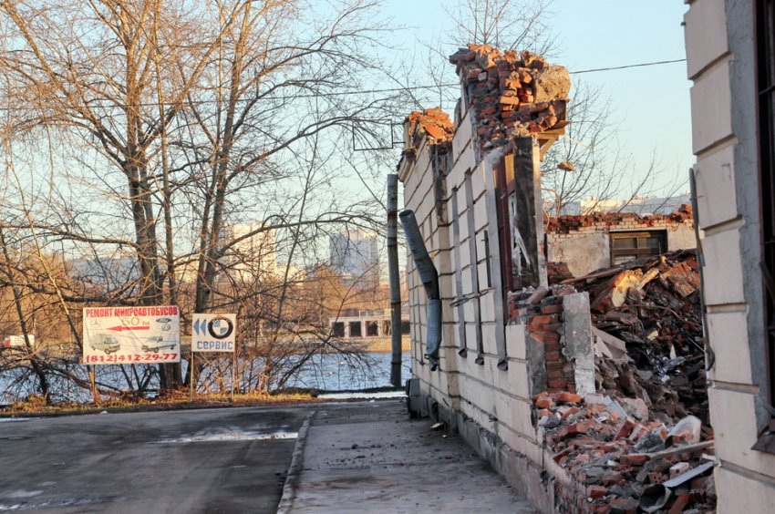 Снос бывшего метизного завода в Общественном переулке, 5, идет с нарушением техники безопасности: вокруг не установлен забор, и кирпичи летят на тротуар и проезжую часть. ГАТИ намерена наказать подрядчика.