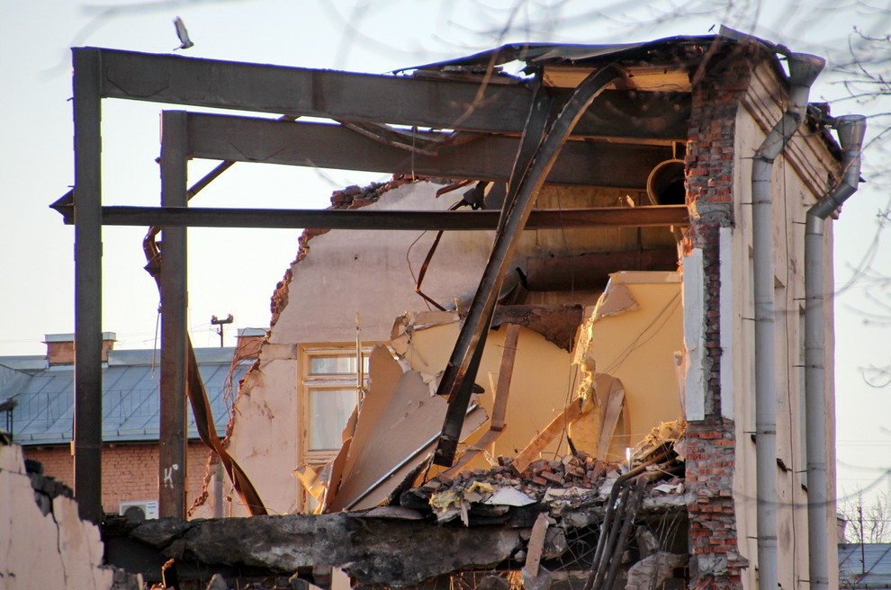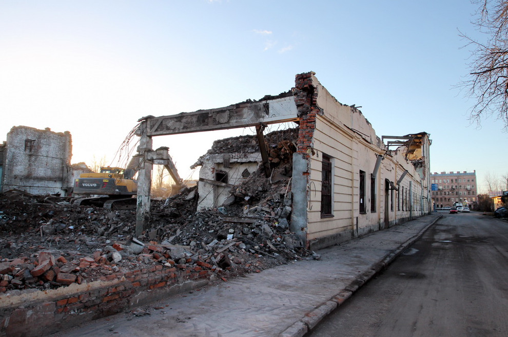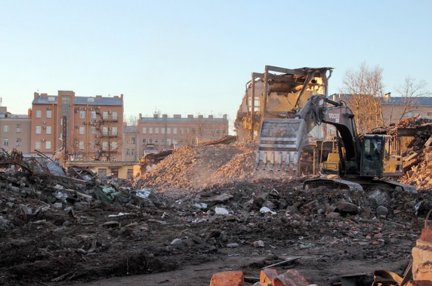В минувшем сентябре начался снос завода со стороны двора. Как и предполагал «Канонер», работы ведет группа «Размах», а именно ООО «Размах ГП». Согласно нашей оценке, это единственный проект прежде крупнейшего демонтажного холдинга Петербурга, реализованный в городе в 2015 году. По этой причине лидерские позиции отняли Springald, ООО «Терминатор» и ООО «Строительная фирма „Ирон“».