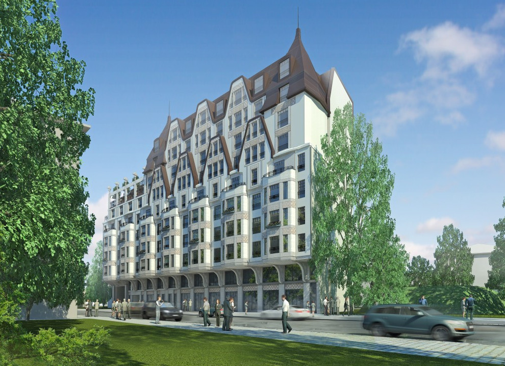 Облик здания в стиле «спальной» архитектуры разработало собственная мастерская «Лидера». Застройщиком официально заявлено ООО «Смоленское». Завершение строительства намечено на конец нынешнего года — дом еще необходимо подключить к электричеству.