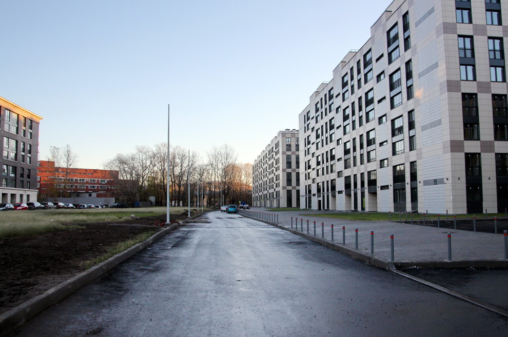На улице Короленко, 5, застройщик ООО «ЛСР. Недвижимость — Северо-Запад» строит 9-этажный жилой комплекс «Русский дом». Мастера-проектировщики из «Евгения Герасимова и партнеров» растянули на такую высоту неомодерновые фасады с шатровыми крышами. Застройщик обещает, что петербуржцы смогут оценить масштаб новостройки в июле 2017 года.