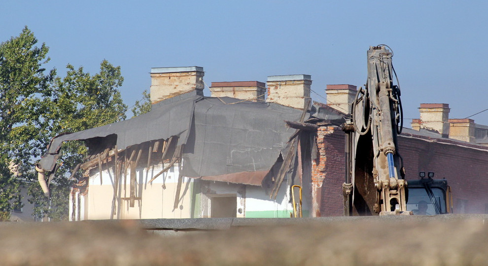 На днях начался снос дворовых корпусов метизного завода. По информации «Канонера», работы по заказу «СГС» может вести группа «Размах». Она по неизвестной причине не афиширует это, более того, вся техника на объекте арендована у ООО «Рентал тех», хотя у «Размаха» был большой парк собственных экскаваторов. Комментарий демонтажной группы «Канонеру» получить не удалось.