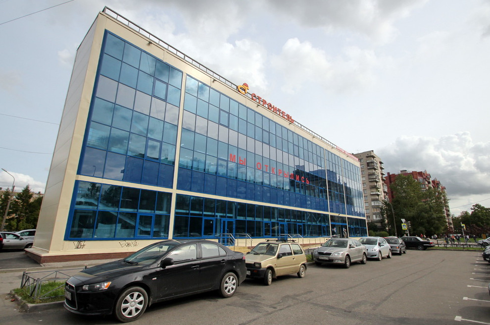 Одноэтажное здание, в документах записанное как банк, было построено в 2008 году. Его разместили на зеленой части бульвара Новаторов, а главный фасад обратили на Дачный проспект. Застройщиком было ООО «Центр обслуживания на Дачном проспекте» (правопредшественником компании является ООО «Корпорация С» Василия Сопромадзе). На самом же деле здесь открылся магазин «Строитель».