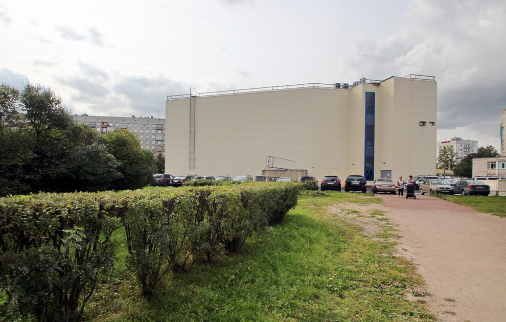 Одноэтажный торговый центр «Строитель» на бульваре Новаторов возле Дачного проспекта надстроили двумя новыми этажами. Фасады остеклили синими зеркальными окнами.