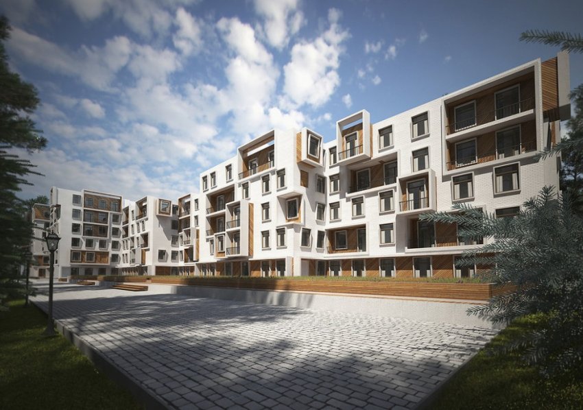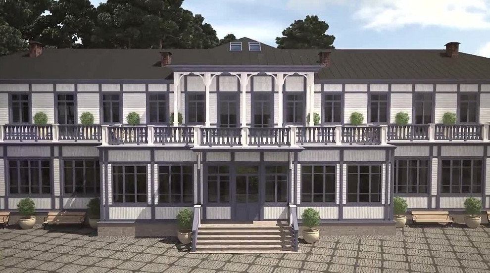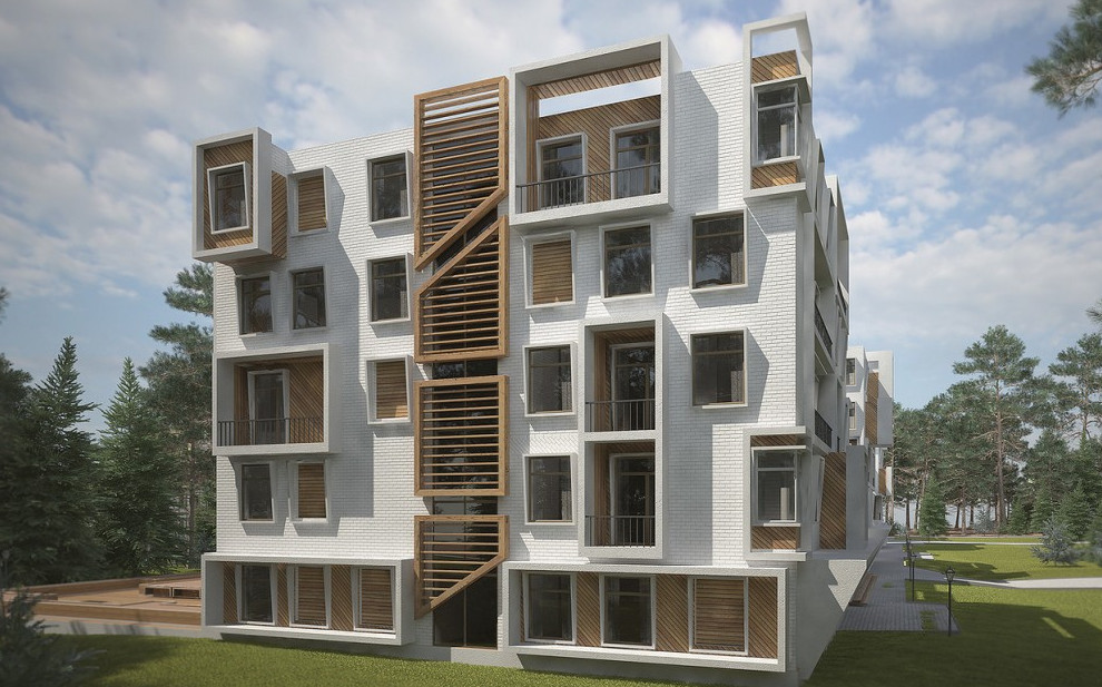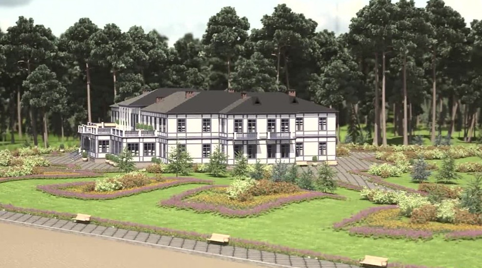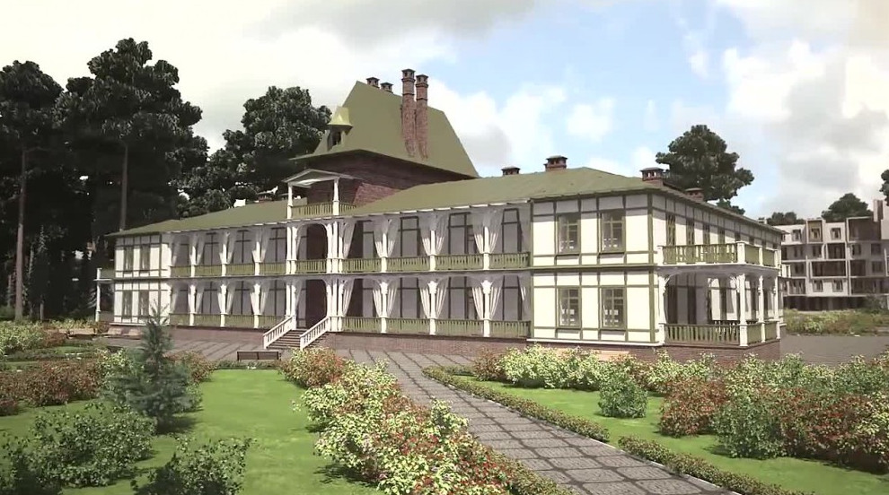 Деревянный лесной пансионат, меньше всего пострадавший в войну, «представляет собой руины». На его месте построят похожий жилой дом на 16 квартир с облицовкой лиственницей, клинкерным кирпичом и природным камнем. Под ним сделают парковку на 18 машин.