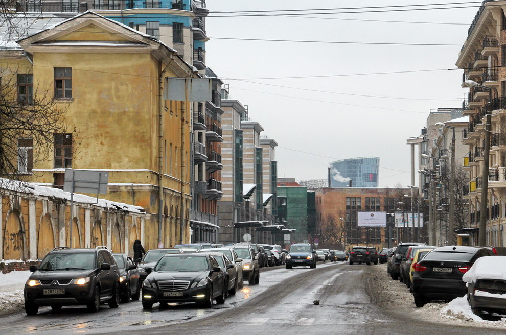 Для территории позади Петмола городские законодатели выбрали фактически «спальную» высоту застройки — 60 метров. А потому на самой границе с историческим центром выросли «муравейники», оказавшие сильное влияние на окружение. Один из домов — корпус жилого комплекса «Времена года» на Московском проспекте, 73, корпус 5, — вылез в створе улицы Егорова. Он же оказался виден и в перспективе набережной Крюкова канала, в частности с Торгового моста. Застройщиком было ООО «Юнит», связанное с казахстанским Meridian Capital CIS Fund, проект делало ООО «Евгений Герасимов и партнеры».