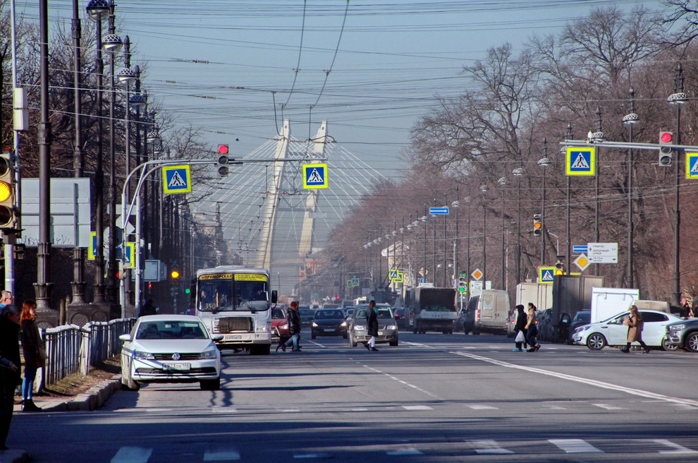 В перспективе Большого проспекта Васильевского острова в 2015 году показались пилоны Западного скоростного диаметра. Они принадлежат вантовому мосту через Корабельный фарватер, который строится в устье Невы. Проект выполнило ЗАО «Институт „Стройпроект“».