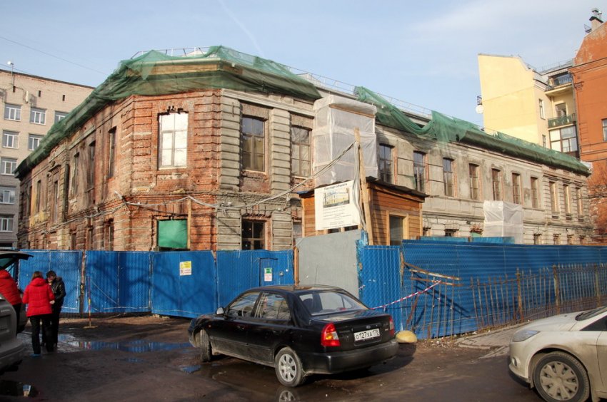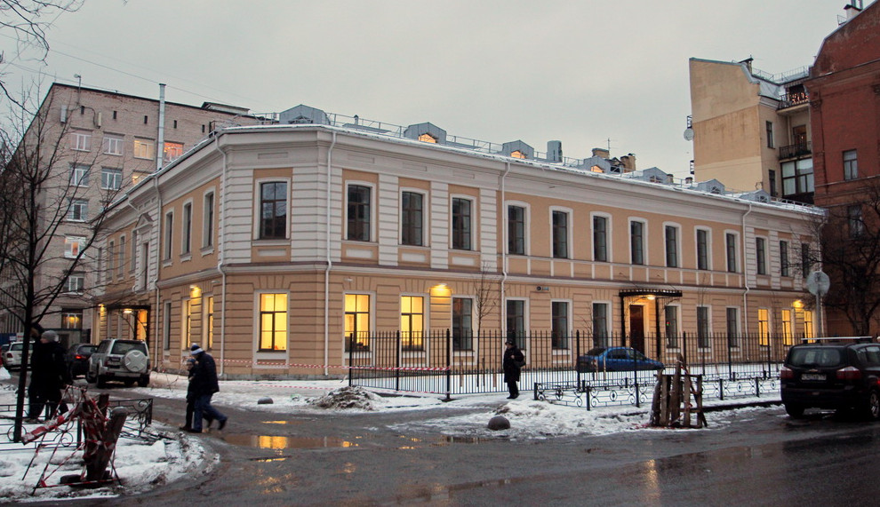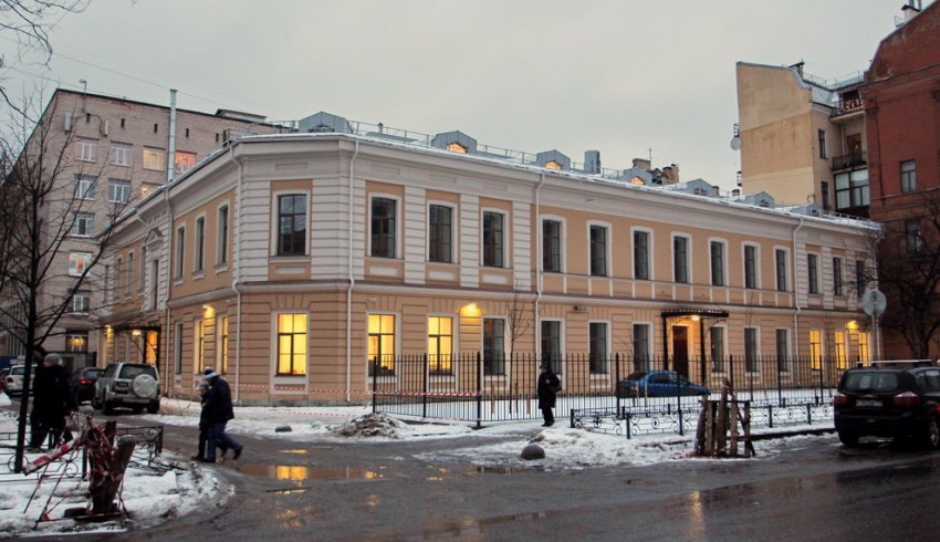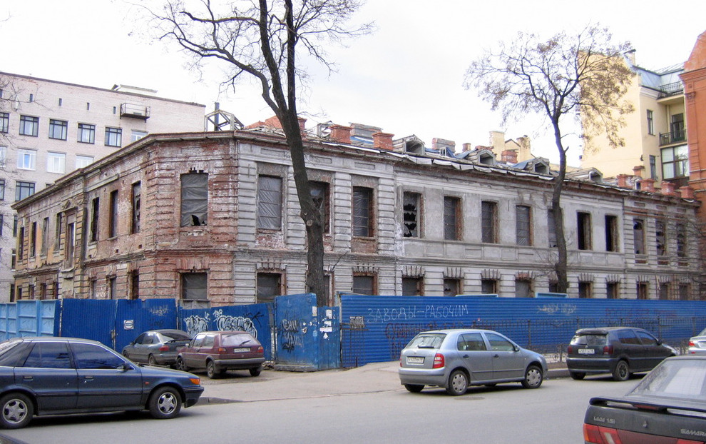 Это прежде двухэтажное здание на улице Маяковского, 12, литера П, было построено в 1891–1892 годах по проекту архитектора Вениамина Королькова. Прежде оно было корпусом Мариинской больницы. В советское время его перепрофилировали под поликлинику. В конце 1980-х годов, когда постройку признали аварийной, начался капитальный ремонт, но не завершился.