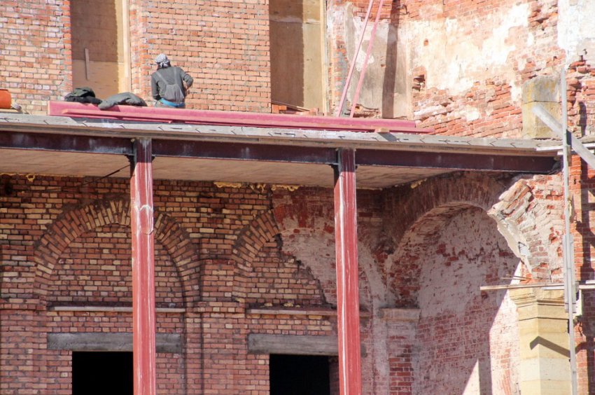 Несмотря на то что многие очевидцы и читатели нашего издания не верили, что господин Руднев сможет обойтись без сноса, почти все старые стены были сохранены, а утраченные элементы воссозданы из кирпича. Сейчас здание имеет кровлю, задний фасад получил очертания террасы.