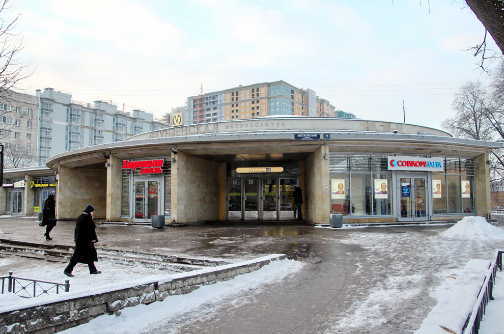 Павильон «Фрунзенской» был построен в 1961 году по проекту архитекторов Арона Гецкина и Валентины Шуваловой. Они же создали типовые павильоны «Электросилы», «Парка Победы» и «Горьковской». Вместо строгой хрущевской «Горьковской» уже построили здание в форме летающей тарелки. Остальные метровокзалы подновили, но реконструкция отложена в долгий ящик.