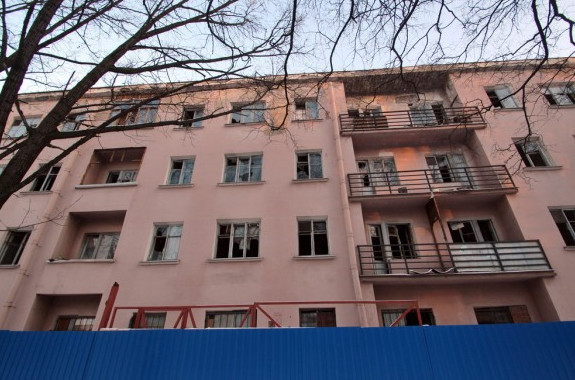 Это четырехэтажное здание было построено в 1934 году. На саму Благодатную улицу оно выходит боковым фасадом. Внутри никогда не проводили капитальный ремонт, а несколько лет назад постройку признали аварийной и расселили.